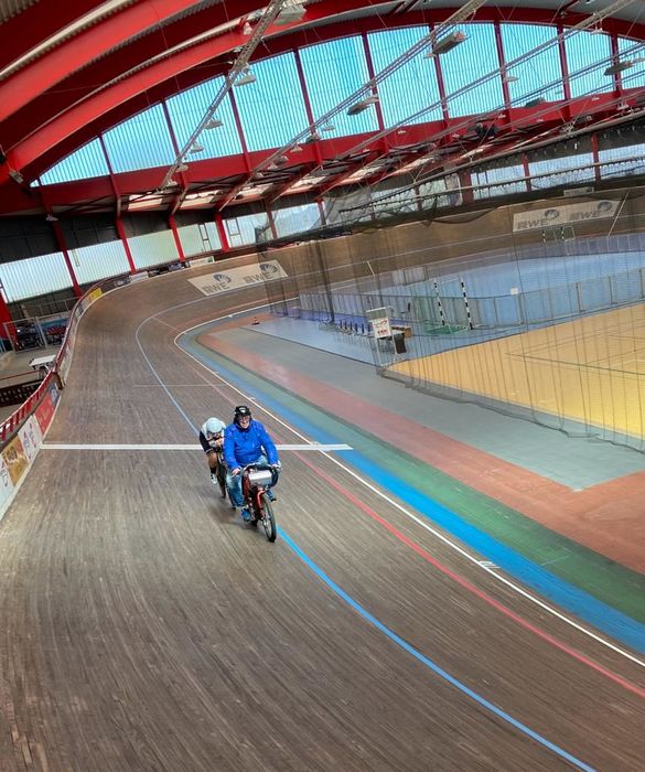An dem Training haben auch die U19 Juniorinnen Isabell Oepen und Linda Riesmeyer teilgenommen, die ebenfalls ihre Fertigkeiten im Madison für einen Wettbewerb verbessern wollten.