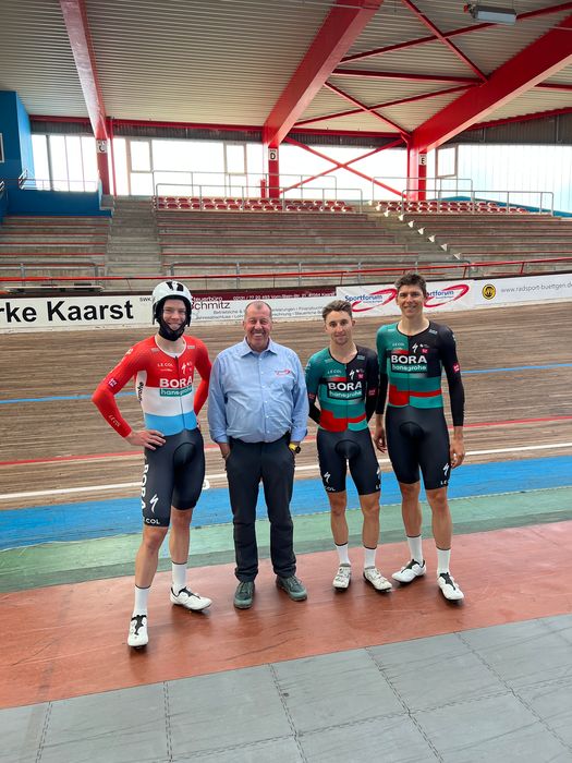 Auch das Team Bora hansgrohe war mit seinem Sportdirektor Rolf Aldag im Sportforum Kaarst-Büttgen.