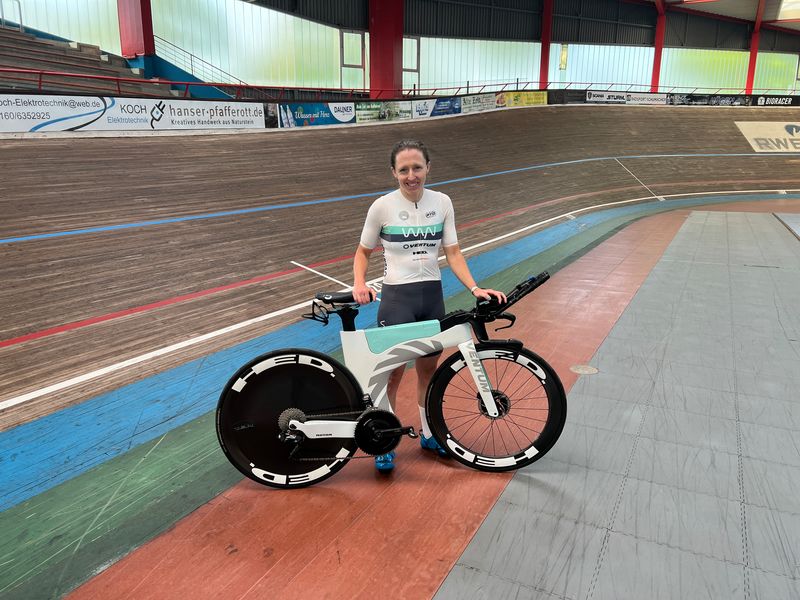 Heute besuchte uns die Texanerin Jocelyn McCauley im Sportforum. Am Sonntag ist Sie noch dritte beim Ironman in Texas geworden, und heute zu Aerodynamiktests mit HYCYS im Sportforum.
