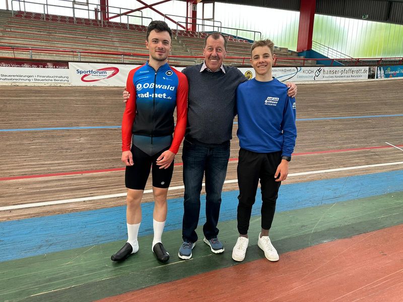 Ex Europameister der Einerverfolgung (Elite + U23) Nicolas Heinrich und Junioren-Vizeweltmeister in der Mannschaftsverfolgung Tobias Müller vom Team "rad-net Oßwald" waren am Sonntag direkt nach dem Radrennen in den Niederlanden nach Kaarst-Büttgen zu einem Aero-Test mit Lexxi Sports angereist. Gerne öffnete das Sportforum für die zwei Nachwuchstalente vom Team "rad-net Oßwald" extra die Radsporthalle. Mit dabei Teamleiter Uli Müller, der sich sehr über die Flexibilität freute.