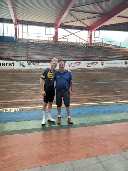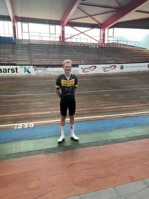 Am 11.07.23 war Ole Theiler (U 23), 3. der DM Zeitfahren von Donaueschingen nach Bad Dürrheim, zur Vorbereitung auf die Rad WM in Glasgow im Sportforum Kaarst-Büttgen. Hier fanden unter der Leitung von Frederic Dahmen, Wattwerk, Aerodynamiktests statt.