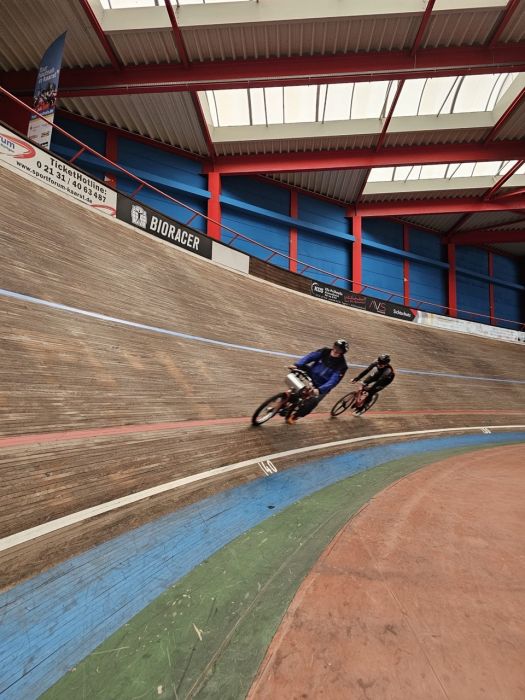 am heuitigen Samstag waren Colin Plich (U19) und Neal Tellbüscher (U23) zum Training auf der Bahn in Büttgen. Das Training dient der Vorbereitung der beiden Kadersportler auf die Winterbahnmeisterschaft in Büttgen und die Deutschen Meisterschaft Omnium in Frankfurt/Oder. Organisiert wurde das Training durch das Engagemant der Eltern, die die Bahn hierfür angemietet hatten. Durch Eltern der Fahrerinnen und Fahrer unterschiedlicher Altersgruppen und Vereine organisierte Trainingseinheiten haben schon mehrfach an Wochenenden und unter der Woche stattgefunden. Dieser großartige Einsatz der Eltern ist mit ein Baustein für die Erfolge der Sportlerinnen und Sportler.