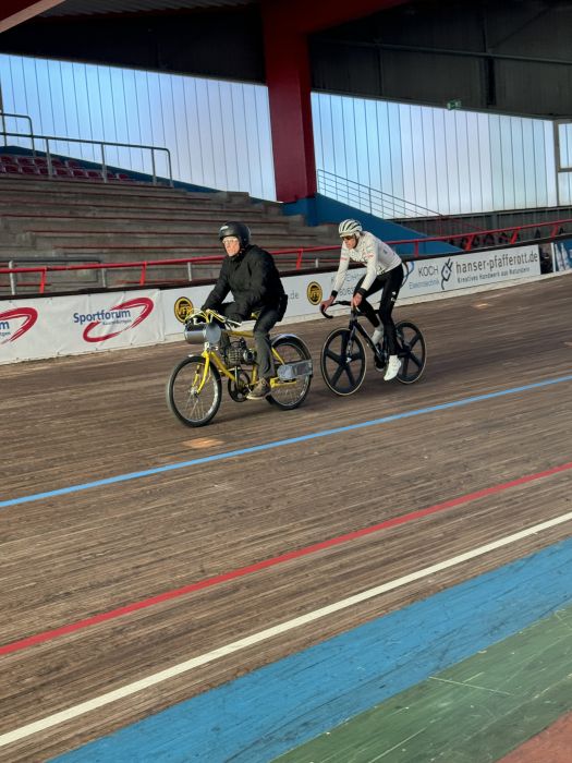 Dazu nutzt er gerne die Radrennbahn Kaarst-Büttgen zum Training und wird hierbei von seinem