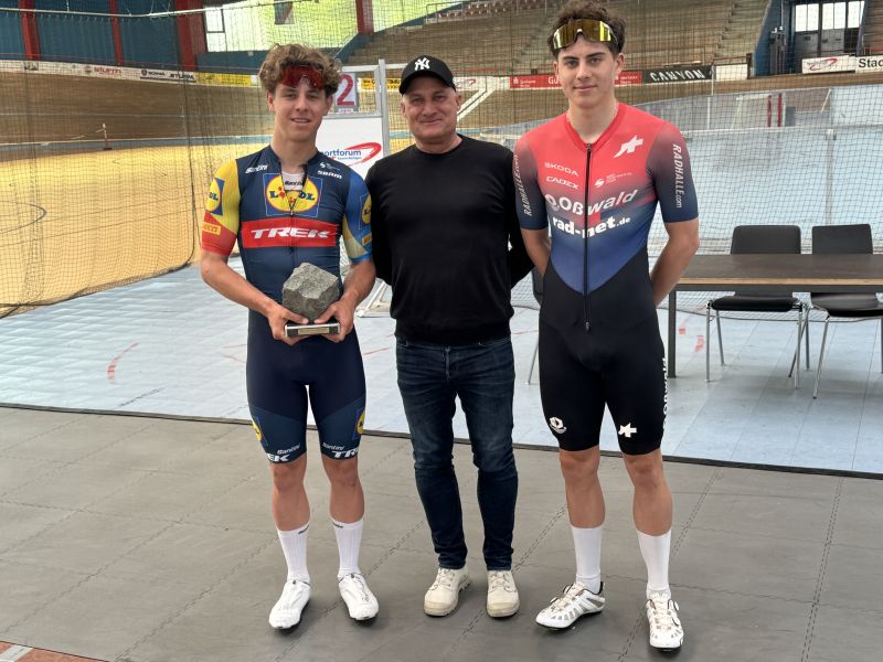 Tim Torn Teutenberg vom Team Lidl-Trek Future Racing und Benjamin Boos vom Team rad-net Oßwald bereiten sich im Sportforum Kaarst-Büttgen auf den Weltcup Milton in Kanada vor.