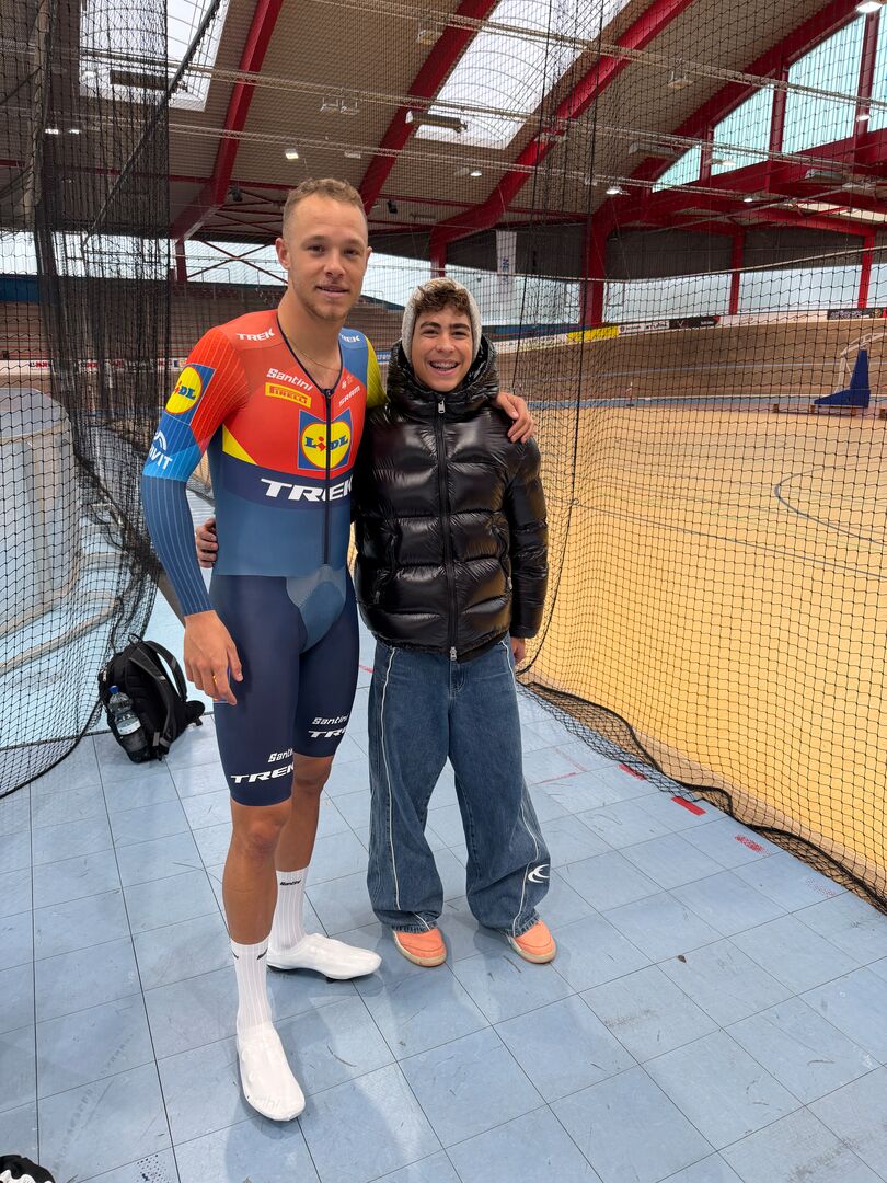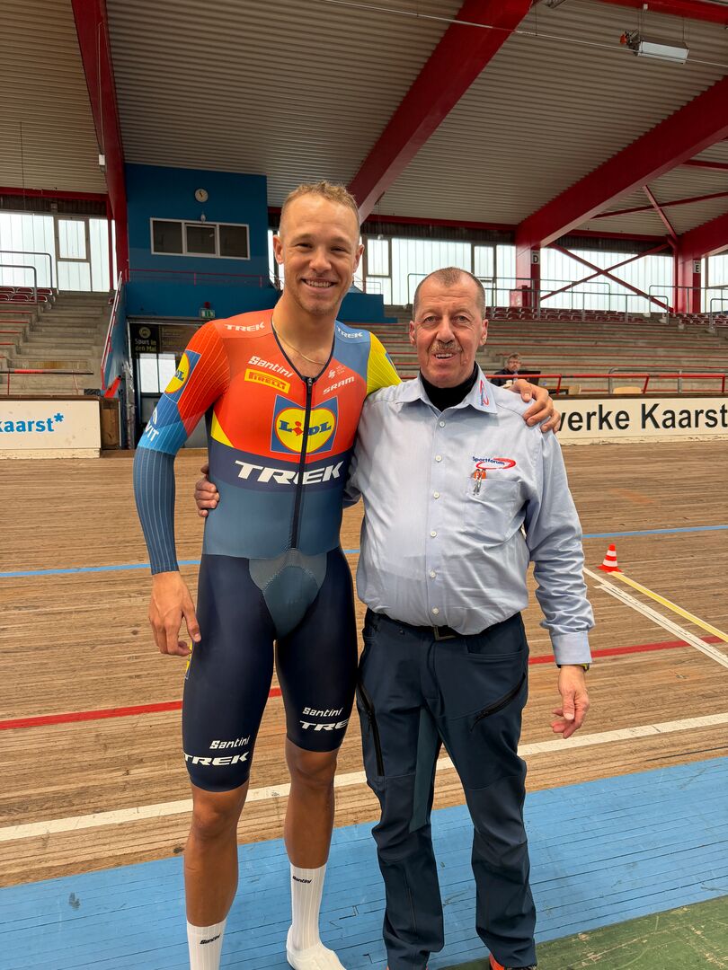 Am 28.11.2025 war das Team Lidl-Trek mit seinem Fahrer Jonathan Milan zu Aerodynamik Tests auf der Radrennbahn in Büttgen zu Gast.