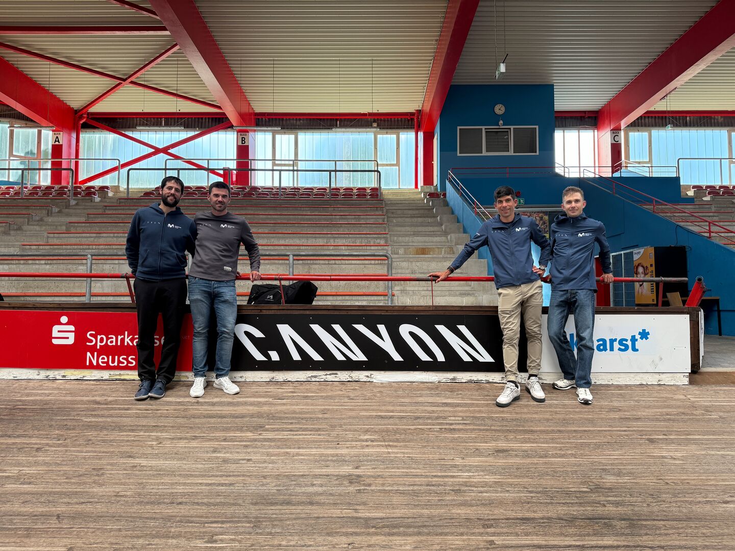 Das Team Movistar, unter Leitung von Performance Manager Ivan Velasco, war zum ersten Mal auf der Radrennbahn im Sportforum Kaarst-Büttgen.