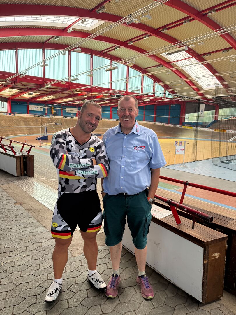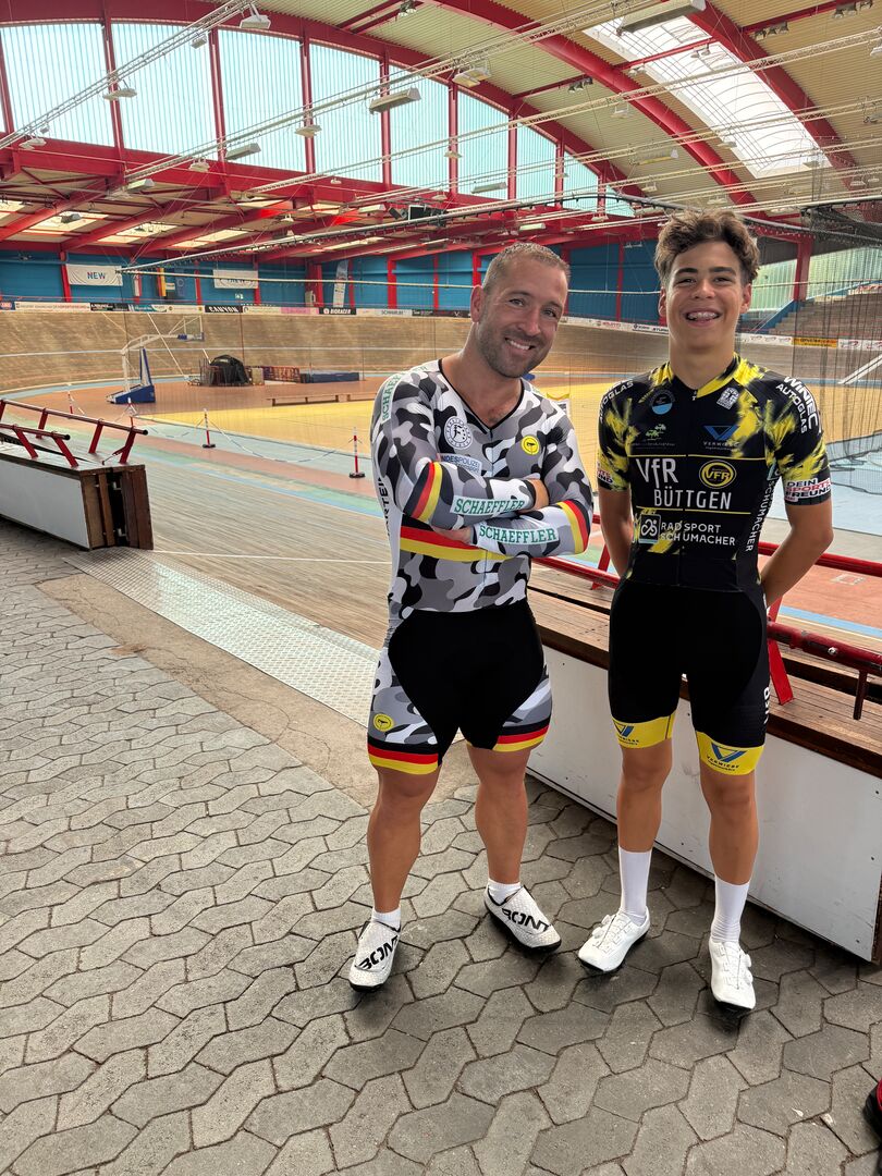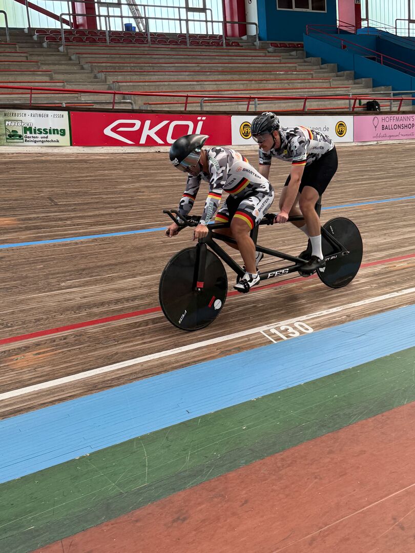 Der Sprinter Robert Förstemann war am 15.08.2025 auf der Radrennbahn in Büttgen, um mit einem Para Cycling Sportler zu testen. Robert Förstemann engagiert sich seit 2019 als Pilot für sehbehinderte Sportler.