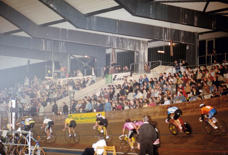 Nach dem ersten Rennen zur Einweihung der großen Halle am 12.04.1980 fand ab dem Jahr 1980 zum ersten Mal am Traditionstag, dem 30. April, der „Spurt in den Mai“ statt. Seitdem wird dieses Bahnrennen ohne Unterbrechung ausgetragen. In den ersten Jahren wurde das Zweier-Mannschaftsrennen noch über 200 Runden (50 km) und später über 160 Runden (40 km) gefahren. Von Anfang an traten nationale und internationale Stars (Olympiasieger, Weltmeister, Nationale Meister) der Eliteprofis und Amateure in Zweier-Mannschaften gegeneinander an. Neben dem Hauptrennen, dem Zweier-Mannschaftsrennen, kamen immer wieder auch Sprinterrennen mit nationalen und internationalen Weltklassesportlern und verschiedene Rahmen-Wettbewerbe, u.a. auch für die Jugend und Schüler, zur Austragung. Heute hat sich das Programm zu einem Vielseitigkeitswettbewerb für Zweier-Mannschaften weiter entwickelt, bei dem natürlich auch der Nachwuchs im Rahmenprogramm nicht zu kurz kommt.